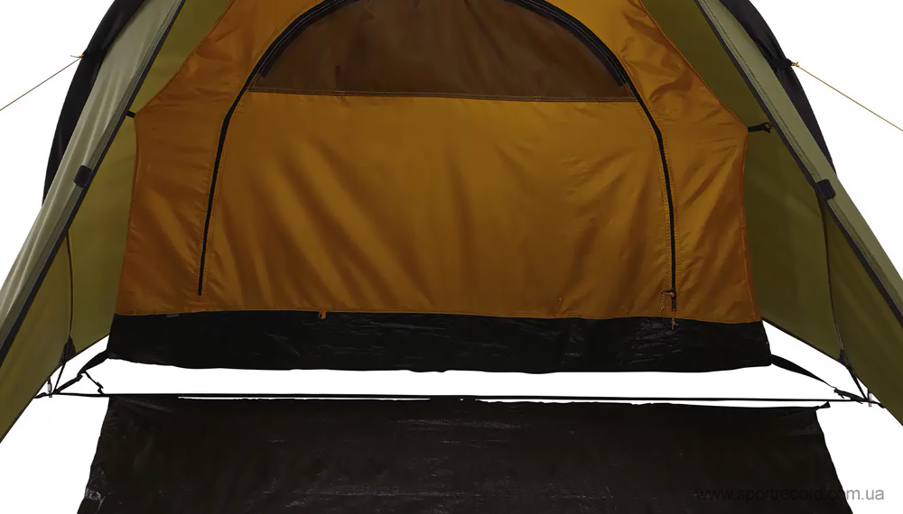 Дверь внутренней палатки имеет как шторку из ткани, так и встроенную москитную сетку, каждая из которых оснащена отдельной молнией. Это позволяет регулировать уровень вентиляции и температуру внутри палатки.