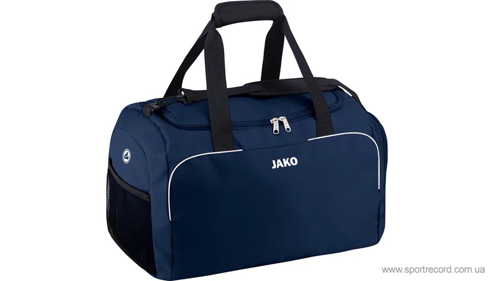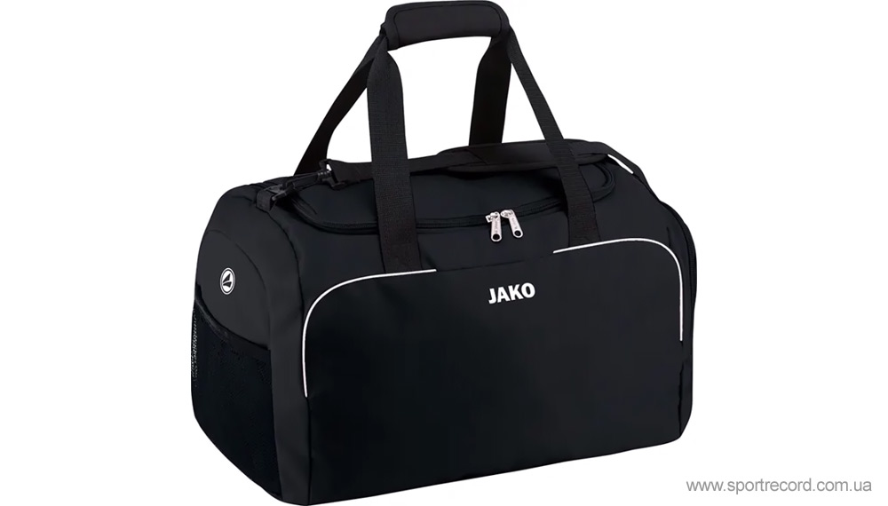 Jako Classico — практичная сумка. Эта практичная спортивная сумка Jako имеет просторное основное отделение, небольшое внутреннее отделение на молнии и очень глубокое отделение на молнии с правой стороны для белья. Плечевой ремень съемный и регулируемый.